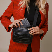 Travel in style with our Passport Holder. Crafted from premium croc-embossed leather, this chic accessory keeps your passport, cards, and travel documents organized and secure.
