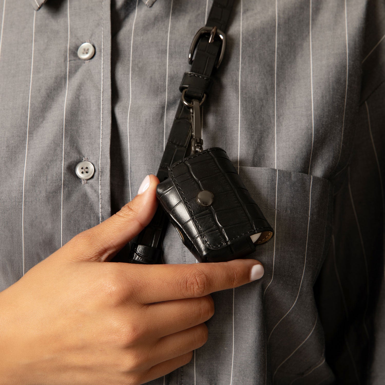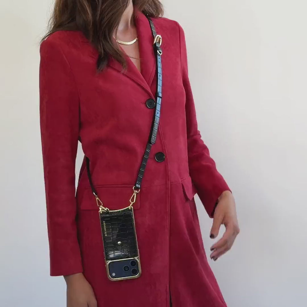 • 100% genuine top grain croc embossed leather crossbody phone case with a detachable magnetic wallet for stand-alone use.