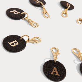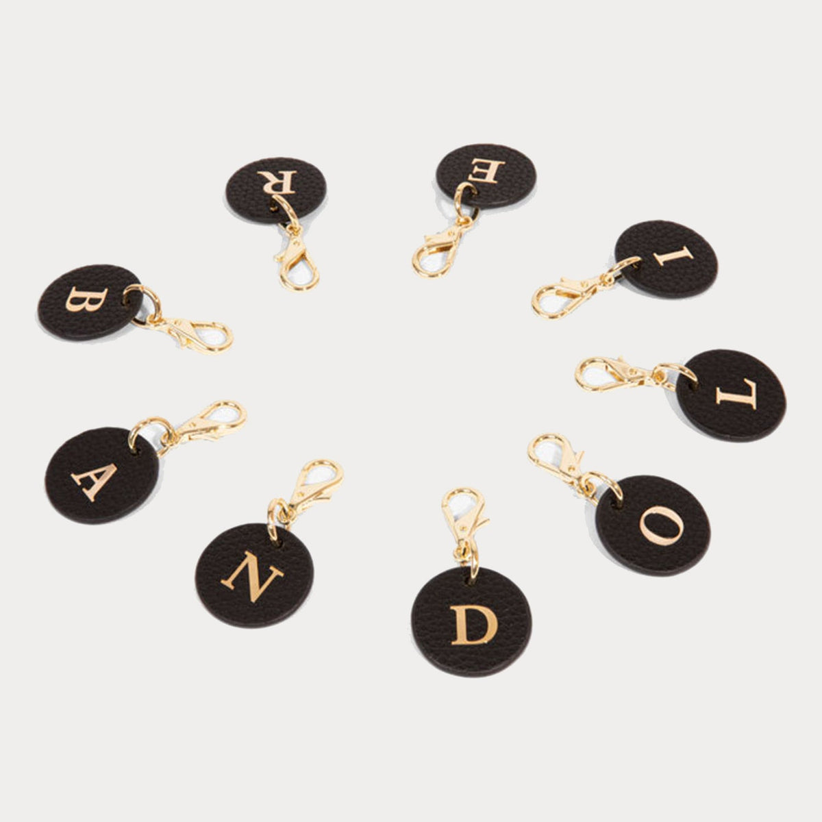 Show your keys and Bandolier some love with the all new, limited edition Round Initial Charm. One of our most requested add-on accessories is finally here and featuring our classic black pebbled leather with black edging and gold plated hardware.