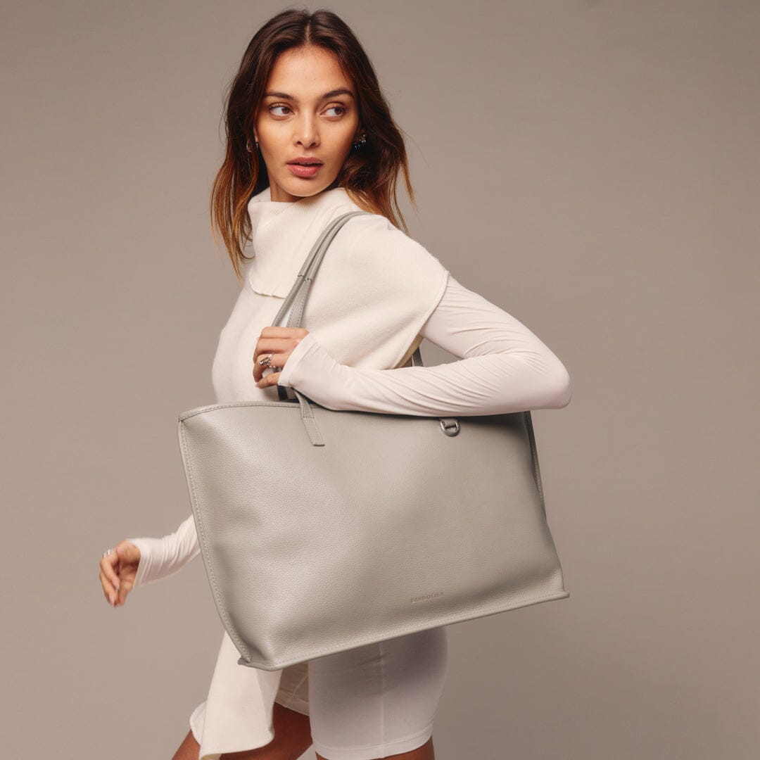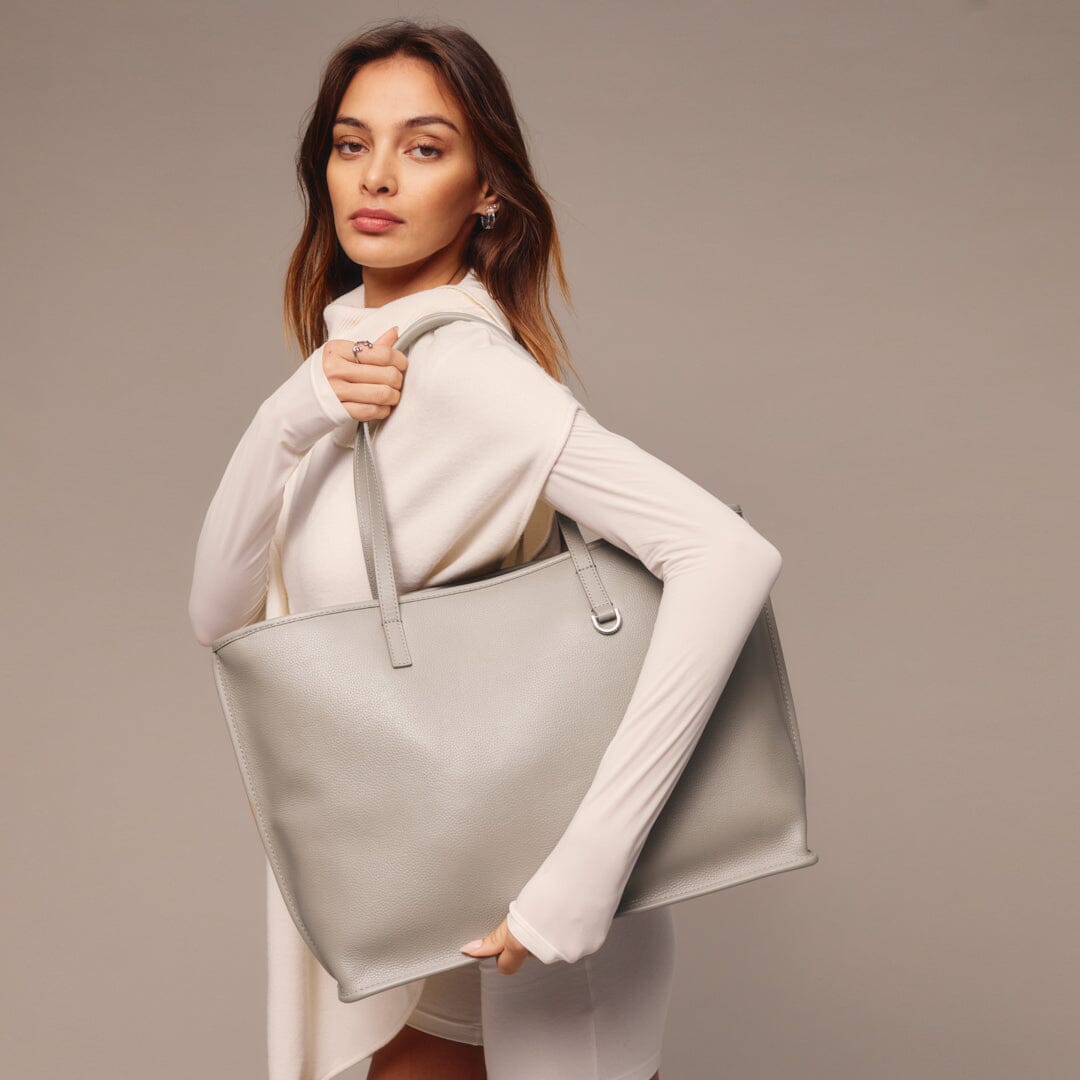 Tote Bag and Carry All Clutch Set in Greige/Silver