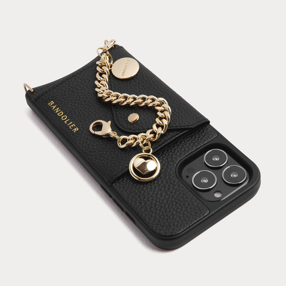 Thick interlocking chain and two delicate heart charms bring unique versatility to this limited edition wristlet. Designed to keep your Bandolier at fingertip’s length, the Charm wristlet can also act as a strap extender and attaches to any Bandolier case.